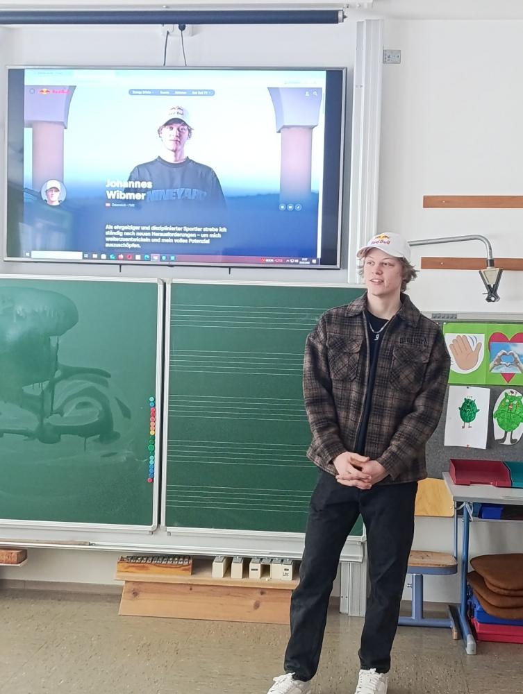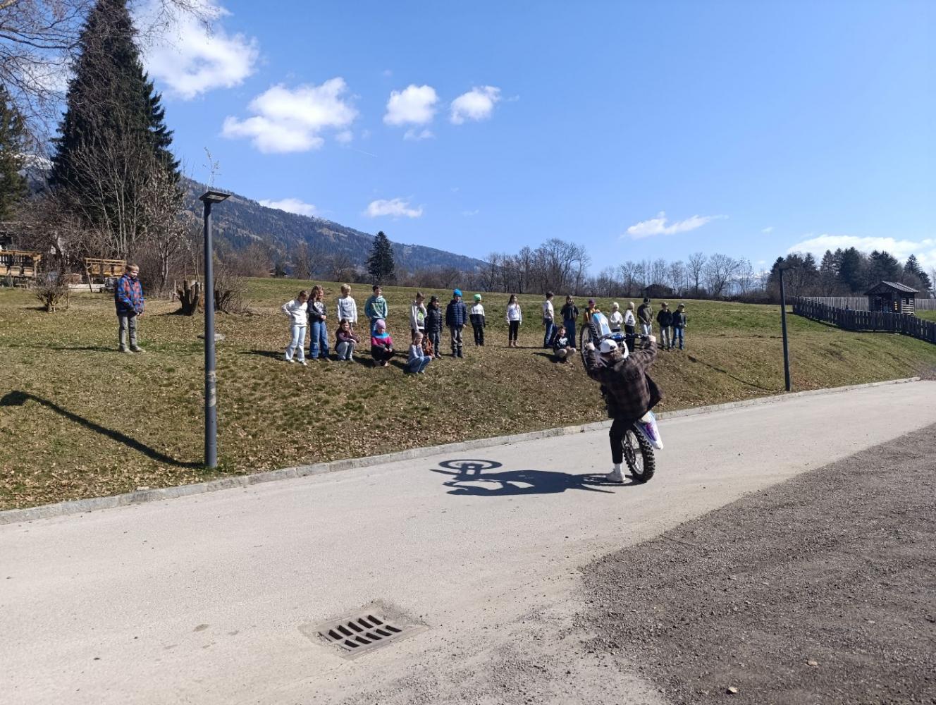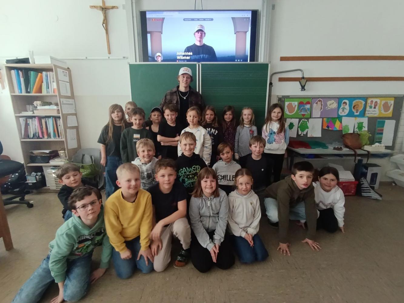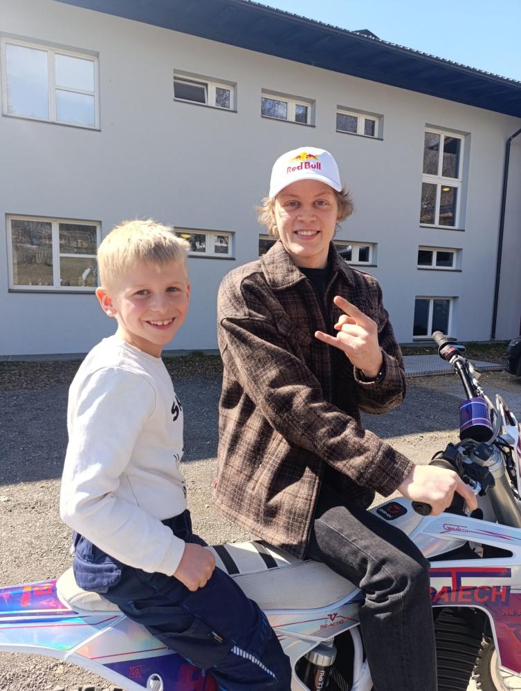 Mit viel Geduld beantwortete er die zahlreichen Fragen der Kinder. Johannes brachte auch sein Motocross-Bike mit und führte einige beeindruckende Kunststücke vor. Vielen Dank, Johannes, für deinen Besuch bei uns und wir wünschen dir weiterhin viel Erfolg bei deinen sportlichen Aktivitäten.