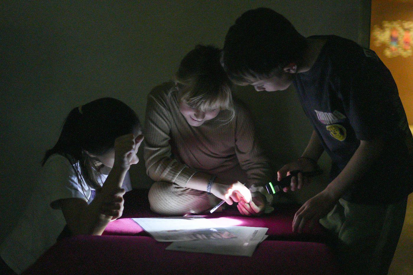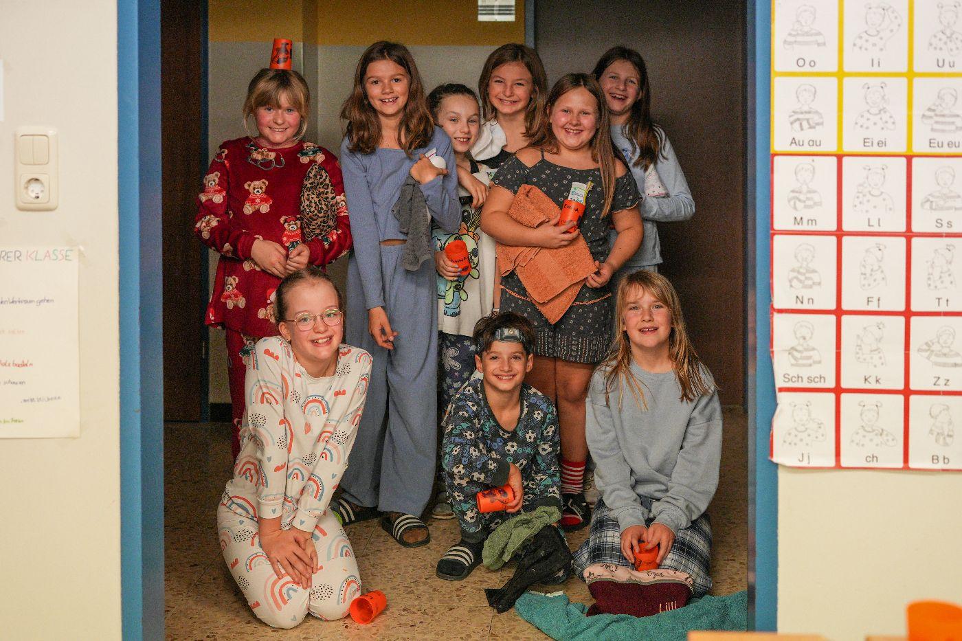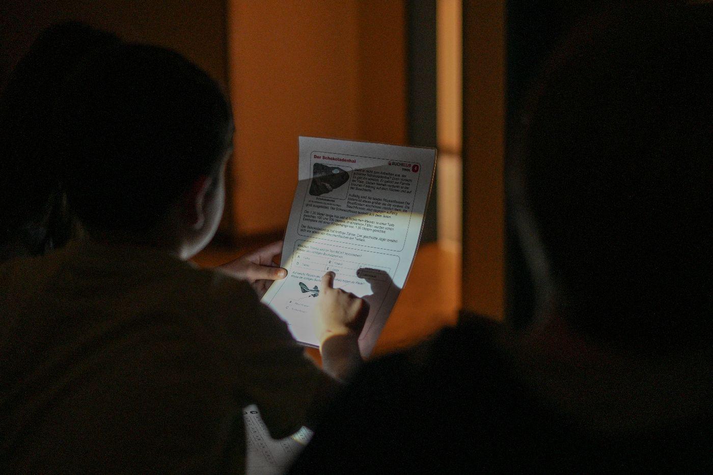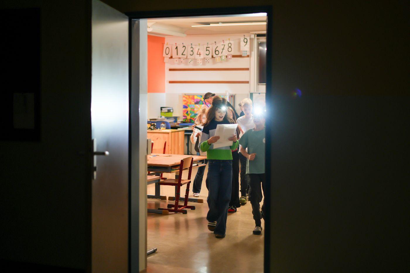 Nach einem ersten Taschenlampen-Erkundungsgang durch die finstere Schule schauten sich alle zusammen das Video „Der weite Weg nach Bethlehem“ an – ein Mitschnitt eines vorweihnachtlichen Schul-Schattenspiels, das heuer auch in Oberlienz am Programm steht. Doch bald rief der Hunger die Kinder ins zum Speisezimmer umfunktionierten Lehrerzimmer. Gestärkt mit Toast (mit und ohne Schinken und Käse) stand das Hauptprogramm bevor: eine Leserallye zum Thema „Schokolade“. In Dreiergruppen ausgelost, absolvierten die Kinder neben zahlreichen Leseaufgaben auch Aktivstationen: das Spiel „Schokohexe“ spielen, Schokosorten blind erschmecken und Schleifen für die eigene Schokoladensorte entwerfen. Als krönenden Abschluss gab es ein köstliches Schoko-Fondue. Anschließend bereiteten alle ihre Schlafplätze vor – wohl schon in dem Vorwissen, dass sie nicht sehr lange benutzt werden sollten ... Nun waren freies Spielen und Lesen angesagt. Einzelne Kinder zeigten auch schon viel Talent hinter der Schattenspielleinwand. Nachdem die Energie der meisten grenzenlos zu sein schien, mussten die Lehrpersonen gegen Mitternacht ein Machtwort sprechen und die Kids Richtung Schlafplätze verweisen. Doch wie zu erwarten, kehrte nicht so schnell Ruhe ein. Getuschel und Gekicher erfüllten den Schulraum, und immer wieder blitzen Taschenlampenlichter auf. Einige mussten sich aber auch bemühen, Tränen von Heimweh zu unterdrücken. Schließlich übernahm doch der Schlaf für einige wenige Stunden das Regiment, ehe noch vor dem Hellwerden die meisten Kinder der Schule wieder neues Leben einhauchten. Mit einem köstlichen Frühstück begrüßte man den anbrechenden Tag. Nach dem unvermeidlichen Aufräumen gab es ein letztes Zusammentreffen, und mit dem Themen-Lied „Schokolade“ verabschiedeten sich alle in ein verkürztes Wochenende nach einer Lesenacht, die wohl allen Beteiligten noch lange in bester Erinnerung bleiben wird.