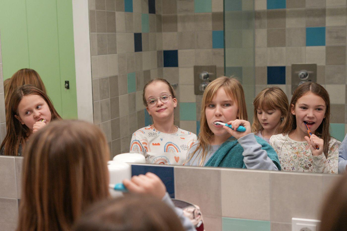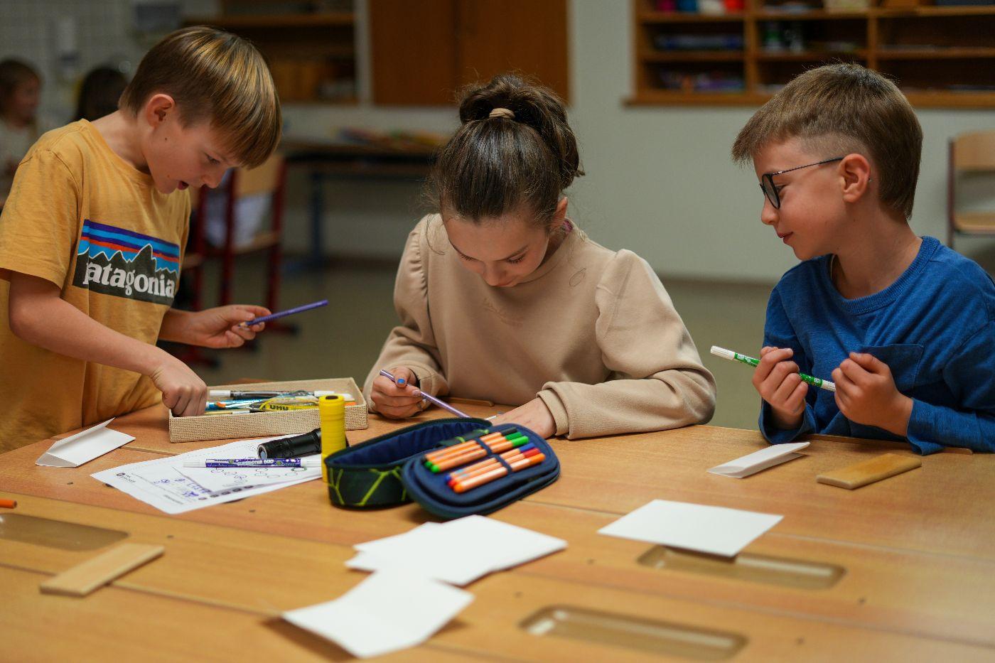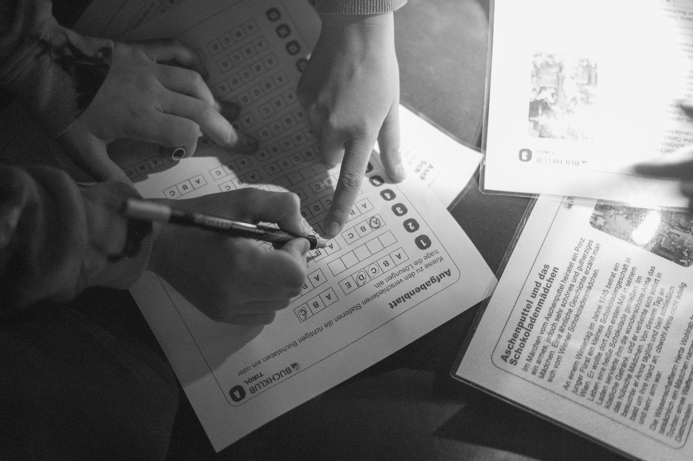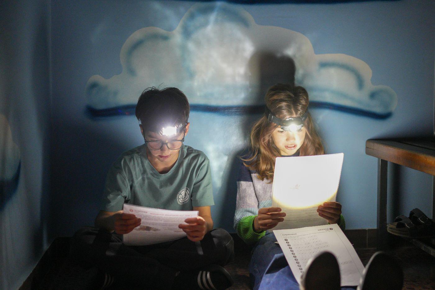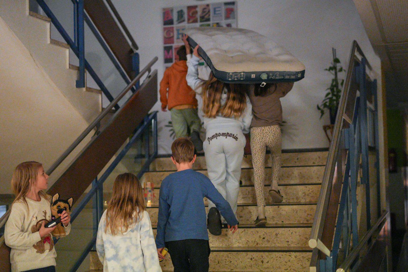 Nach einem ersten Taschenlampen-Erkundungsgang durch die finstere Schule schauten sich alle zusammen das Video „Der weite Weg nach Bethlehem“ an – ein Mitschnitt eines vorweihnachtlichen Schul-Schattenspiels, das heuer auch in Oberlienz am Programm steht. Doch bald rief der Hunger die Kinder ins zum Speisezimmer umfunktionierten Lehrerzimmer. Gestärkt mit Toast (mit und ohne Schinken und Käse) stand das Hauptprogramm bevor: eine Leserallye zum Thema „Schokolade“. In Dreiergruppen ausgelost, absolvierten die Kinder neben zahlreichen Leseaufgaben auch Aktivstationen: das Spiel „Schokohexe“ spielen, Schokosorten blind erschmecken und Schleifen für die eigene Schokoladensorte entwerfen. Als krönenden Abschluss gab es ein köstliches Schoko-Fondue. Anschließend bereiteten alle ihre Schlafplätze vor – wohl schon in dem Vorwissen, dass sie nicht sehr lange benutzt werden sollten ... Nun waren freies Spielen und Lesen angesagt. Einzelne Kinder zeigten auch schon viel Talent hinter der Schattenspielleinwand. Nachdem die Energie der meisten grenzenlos zu sein schien, mussten die Lehrpersonen gegen Mitternacht ein Machtwort sprechen und die Kids Richtung Schlafplätze verweisen. Doch wie zu erwarten, kehrte nicht so schnell Ruhe ein. Getuschel und Gekicher erfüllten den Schulraum, und immer wieder blitzen Taschenlampenlichter auf. Einige mussten sich aber auch bemühen, Tränen von Heimweh zu unterdrücken. Schließlich übernahm doch der Schlaf für einige wenige Stunden das Regiment, ehe noch vor dem Hellwerden die meisten Kinder der Schule wieder neues Leben einhauchten. Mit einem köstlichen Frühstück begrüßte man den anbrechenden Tag. Nach dem unvermeidlichen Aufräumen gab es ein letztes Zusammentreffen, und mit dem Themen-Lied „Schokolade“ verabschiedeten sich alle in ein verkürztes Wochenende nach einer Lesenacht, die wohl allen Beteiligten noch lange in bester Erinnerung bleiben wird.